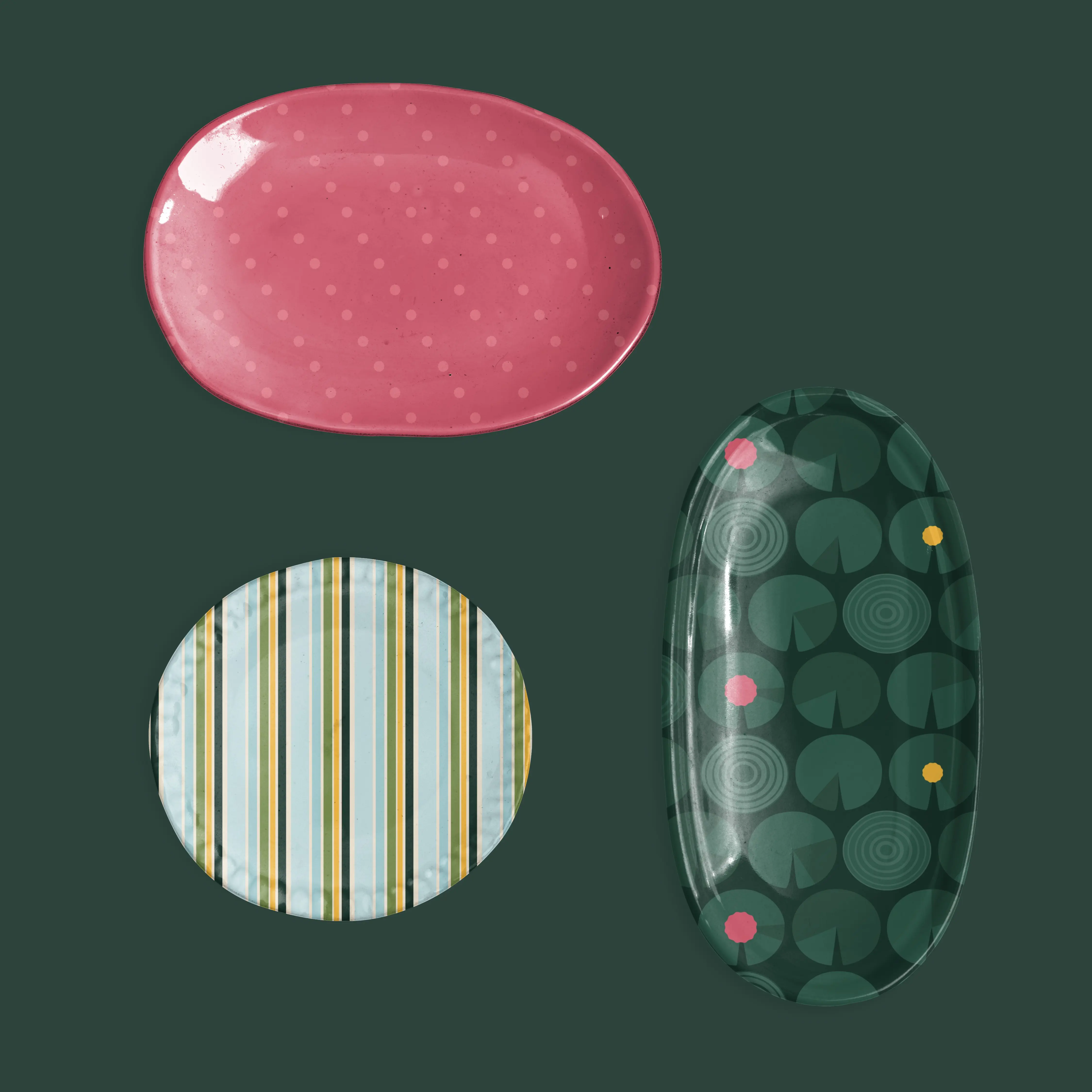 Packed with bold patterns, retro flair, and colorful designs made to brighten kitchens, tables, walls, and more. From statement prints to versatile blenders, these designs are ready to bring some personality to your products. Interested in licensing a print or tailoring something to fit your line? Let’s connect!