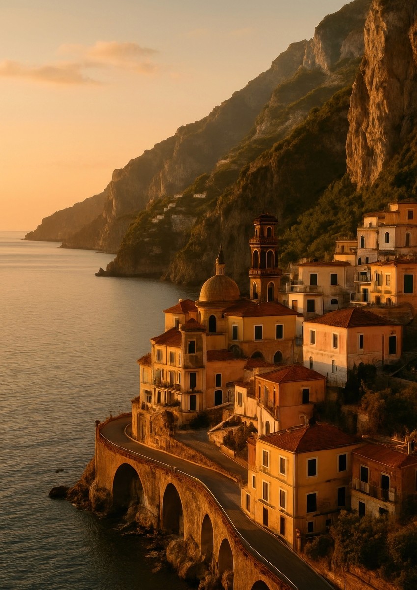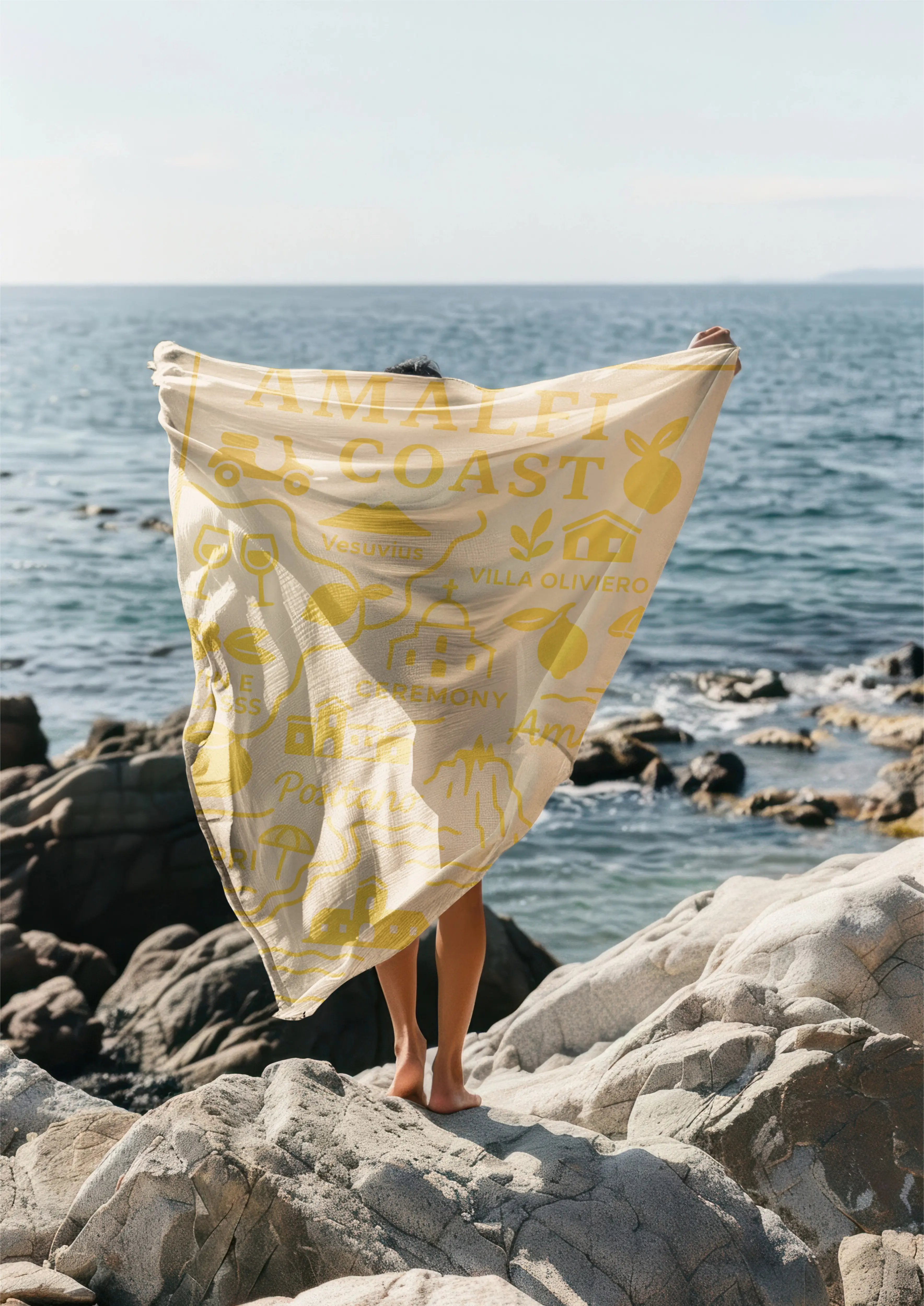 Motifs: Minimal line illustrations (boats, cliffs, Vespas, waves) for clarity and personality.